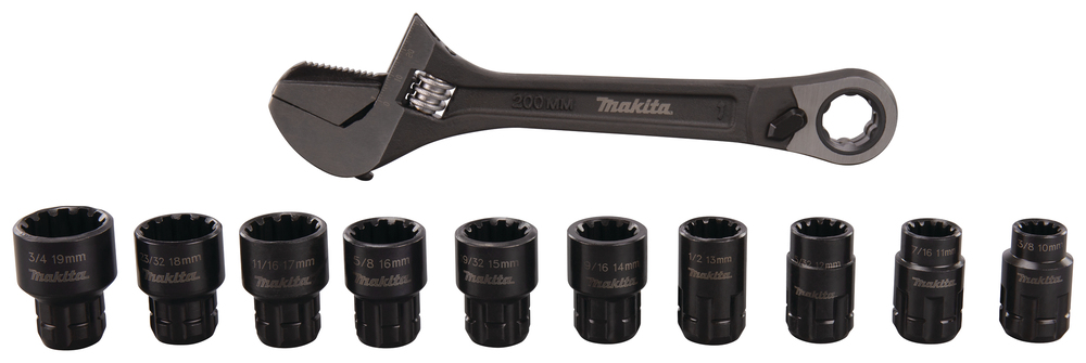 Makita B-65458 Zestaw 11 szt. Klucz nastawny + komplet nasadek 10-19mm  01/26  SUPER PROMOCJA
